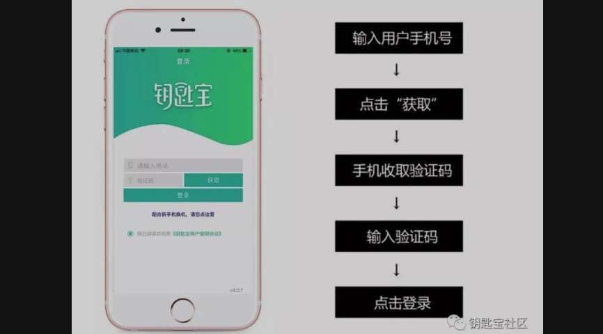 訪客在自己的手機微信內搜索“鑰匙寶訪客”進入小程序,輸入手機號,獲取驗證碼登陸,打開藍牙輕點鑰匙圖標便可開門及乘坐電梯。